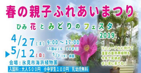 新元号『令和』に決まりましたね。 春の恒例イベント「ひみ花とみどりのフェスタ」 今年はゴールデンウィークをたっぷりとお楽しみいただく…