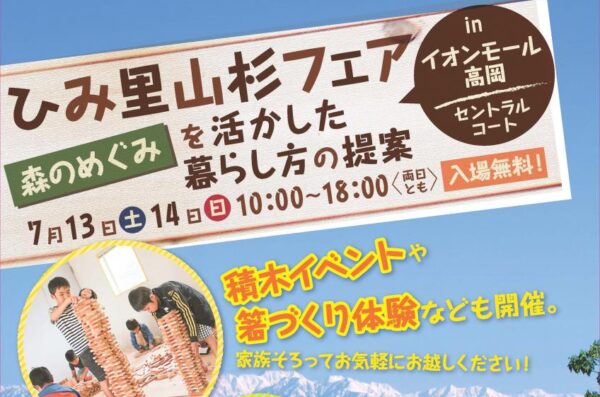7/13(土)、14(日)開催!ひみ里山杉フェアinイオンモール高岡