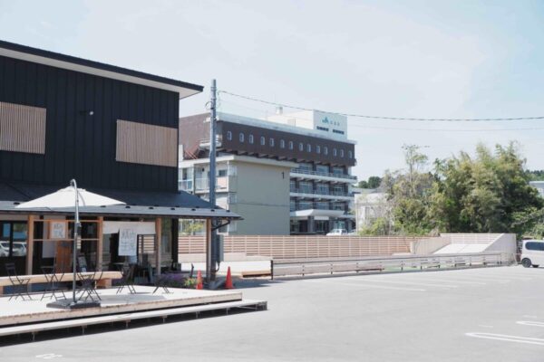 氷見駅の近くに構え、地元の氷見牛を提供する焼肉屋さん氷見牛屋本店。精肉やお惣菜を販売する精肉牛屋も併設されており、そのそばにウッドデッキがあります。