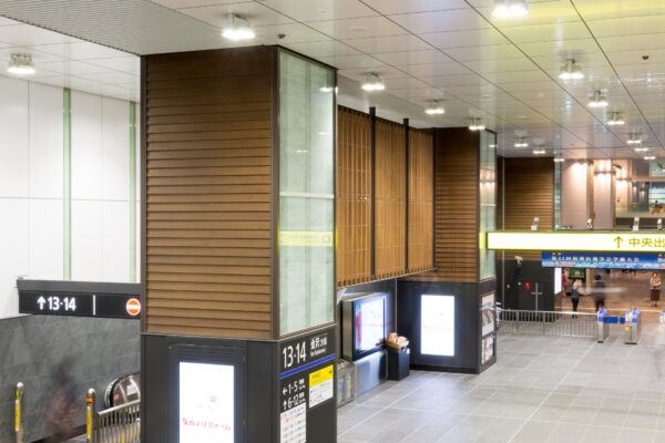 駅に降り立った人に落ち着きを与える空間を創出している事例です。
